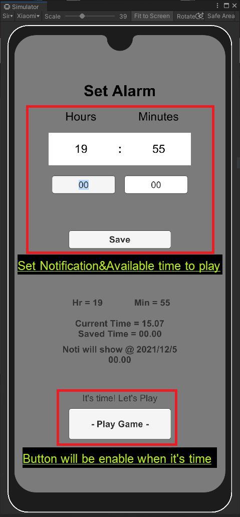 На первой странице: выберите желаемое время для создания уведомления, а также установите доступное время для игры.