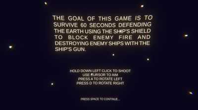 Цель этой игры — выжить в течение 60 секунд, защищая землю, используя ЩИТ корабля, чтобы блокировать огонь противника, и уничтожать вражеские корабли с помощью ПУШКИ корабля.