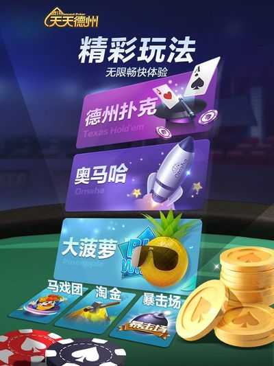 《天天德州》是腾讯游戏精心打造的一款精品扑克游戏,玩法来源于风靡全球,在沿袭经典玩法的基础上融入了中国元素,并提供奥马哈、大菠萝等多种玩法,为玩家带来刺激又丰富的扑克竞技体验。随时随地与微信、手Q好友一起玩。腾讯第一扑克游戏,让世界见识你的实力!