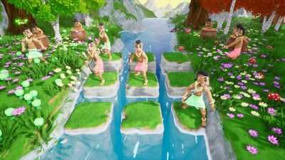 Обе команды пытаются победить, поставив своего воина на блок посреди реки.
