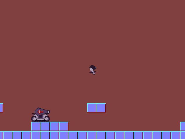 Идея заключалась в том, что вы играете за принцессу вампиров и сражаетесь с армией ангелов, чтобы спасти свою девушку. Находясь в танке, вы можете получить много урона и иметь большую огневую мощь, а вне танка вы довольно слабы, но можете летать и пересекать узкие пространства.