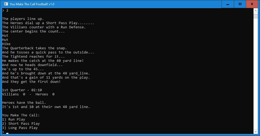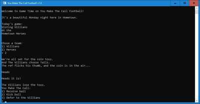 Футбол — ваш выбор! представляет собой текстовую симуляцию американского футбола, в которой вы берете на себя роль игрока в атаке и защите своей команды.