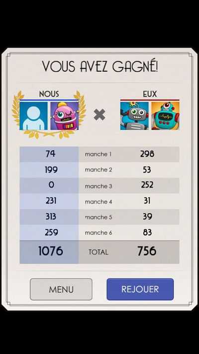 Это игра БЕСПЛАТНО, с версиями TROIS: Belote Classique, Belote Classique с Annonces и Belot Coinchée.