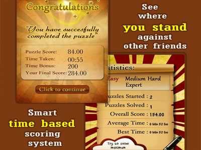 Умная система подсчета очков, учитывающая время, затраченное пользователем на решение головоломки, а также сложность головоломки. Был интегрирован Gamecenter, который показывает пользователей с самым высоким рейтингом.