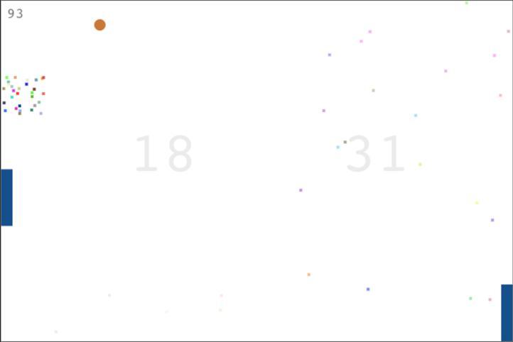 Прежде всего это был эксперимент с JavaScript, чтобы посмотреть, смогу ли я обойти паузы при сборке мусора; таким образом, основной цикл генерирует минимальное количество новых структур данных, которые необходимо выделить в куче, за исключением новых частиц.