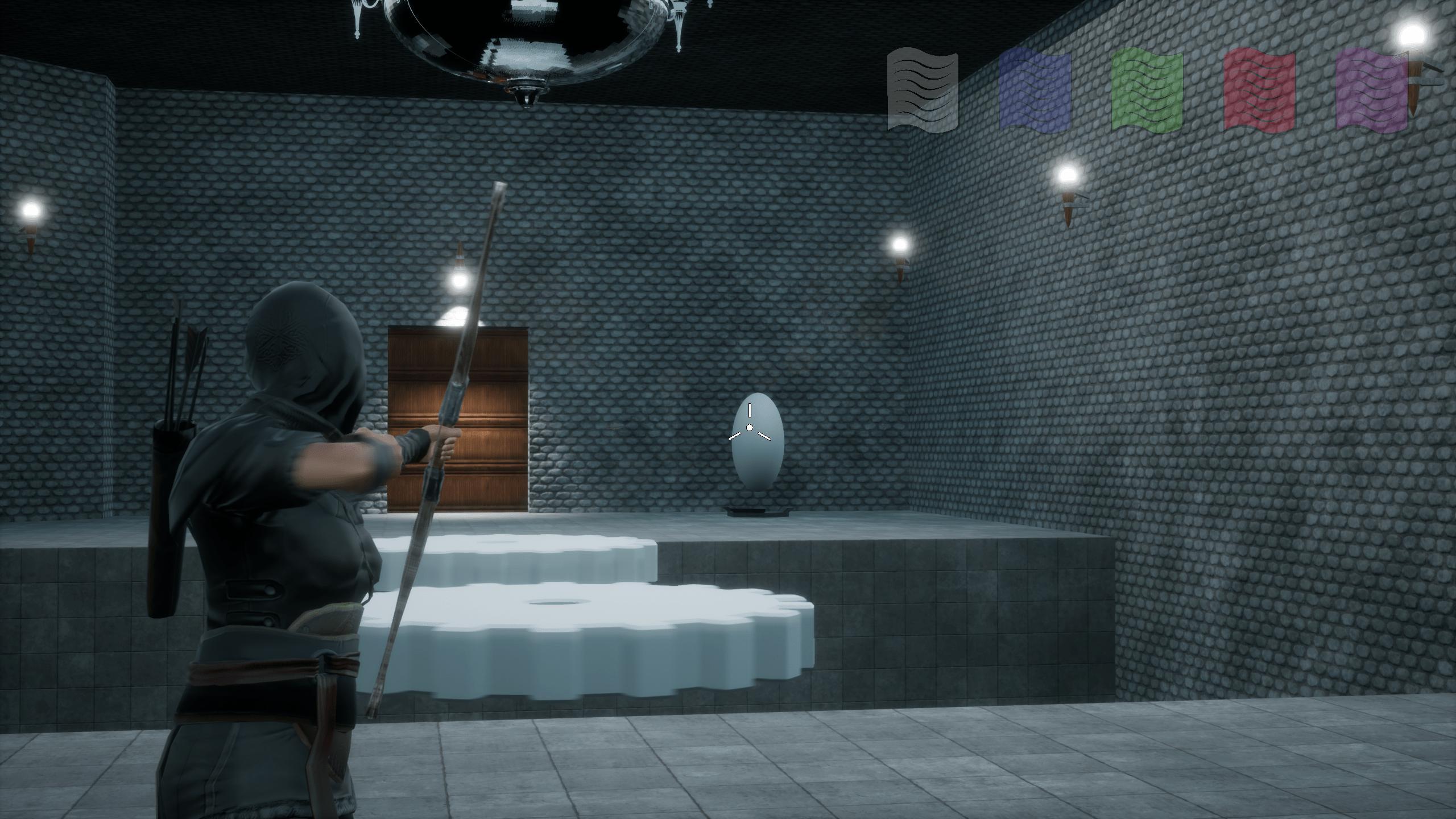 Осмотритесь вокруг с помощью мыши, щелкните правой кнопкой мыши, чтобы нарисовать стрелку, и щелкните левой кнопкой мыши, чтобы выстрелить.
