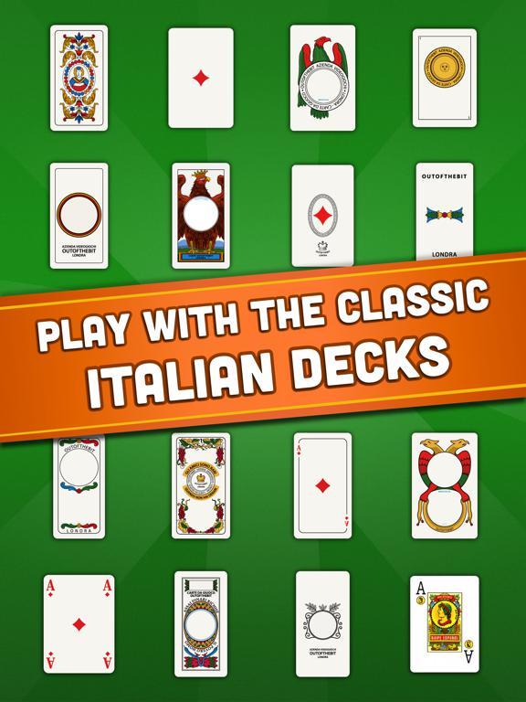 - Выберите свою колоду: в Rubamazzo есть все оригинальные итальянские региональные колоды (Наполетаны, Сицилии, Пьячентины, Пьемонтези, Триестины и другие) в высоком разрешении, которые будут потрясающе смотреться на вашем iPhone и iPad. Или вы можете играть с классическими покерными картами (французский)!