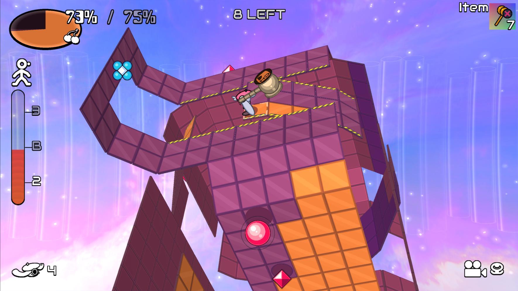 Аркадная игра с привкусом головоломки, в которой ваша цель - перекрасить необходимое количество плиток в нужный оттенок. Остерегайтесь врагов, приближающихся к вам с разных направлений, когда вы будете перемещаться по поворотам геометрических 3D-сцен со всех сторон. Видишь ту стену? Вы можете взобраться на него.