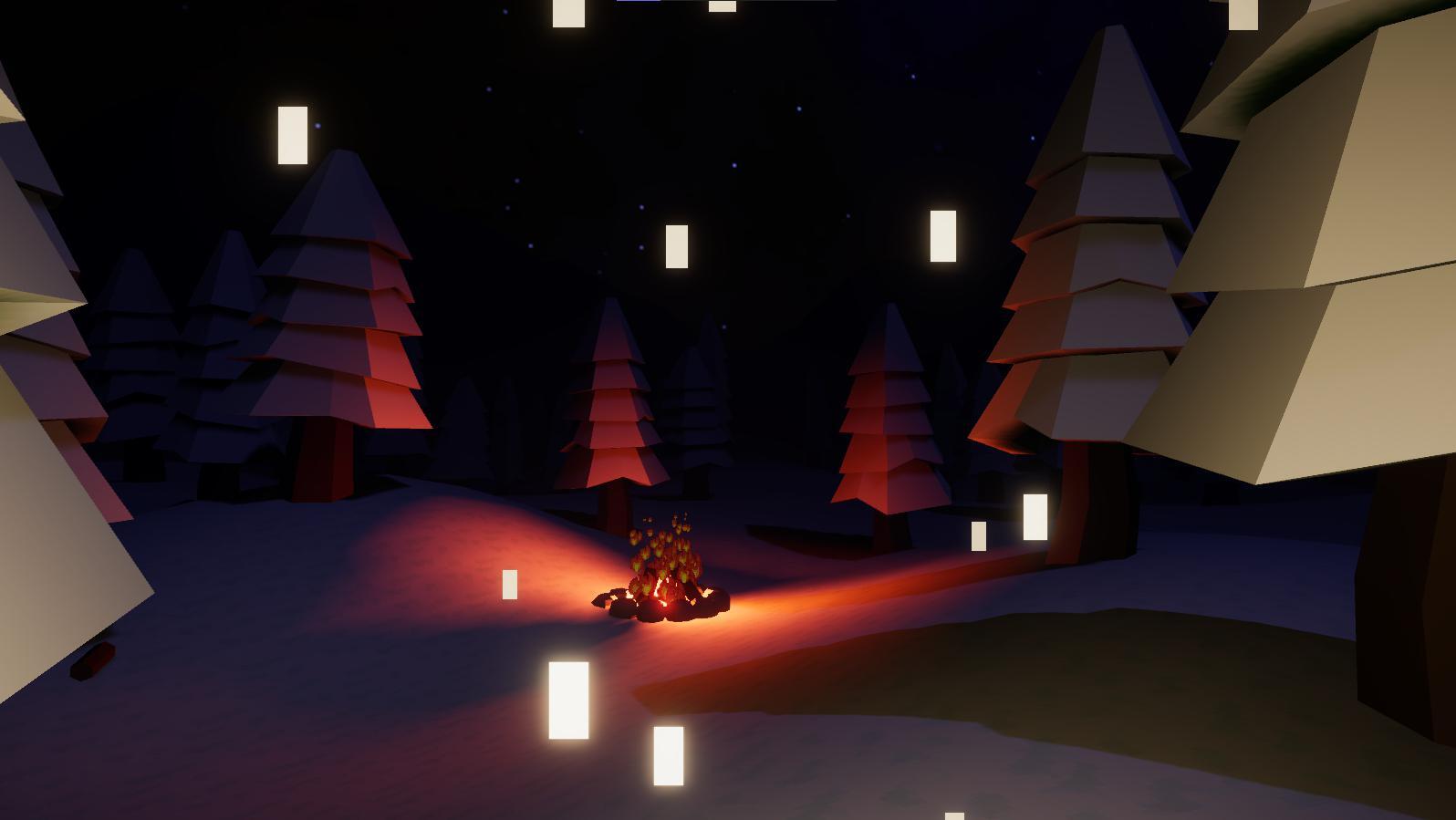 Во время похода в горы внезапная сильная метель отделила вас от вашей туристической группы. Потерянный, одинокий и быстро замерзающий, вы разжигаете костер, чтобы согреться, пока они не придут и не найдут вас утром. Чтобы поддерживать огонь, вы должны выйти на улицу в поисках топлива и других припасов. Когда вы это сделаете, вы заметите, как что-то движется к вам, вырисовываясь на фоне темного ночного неба...