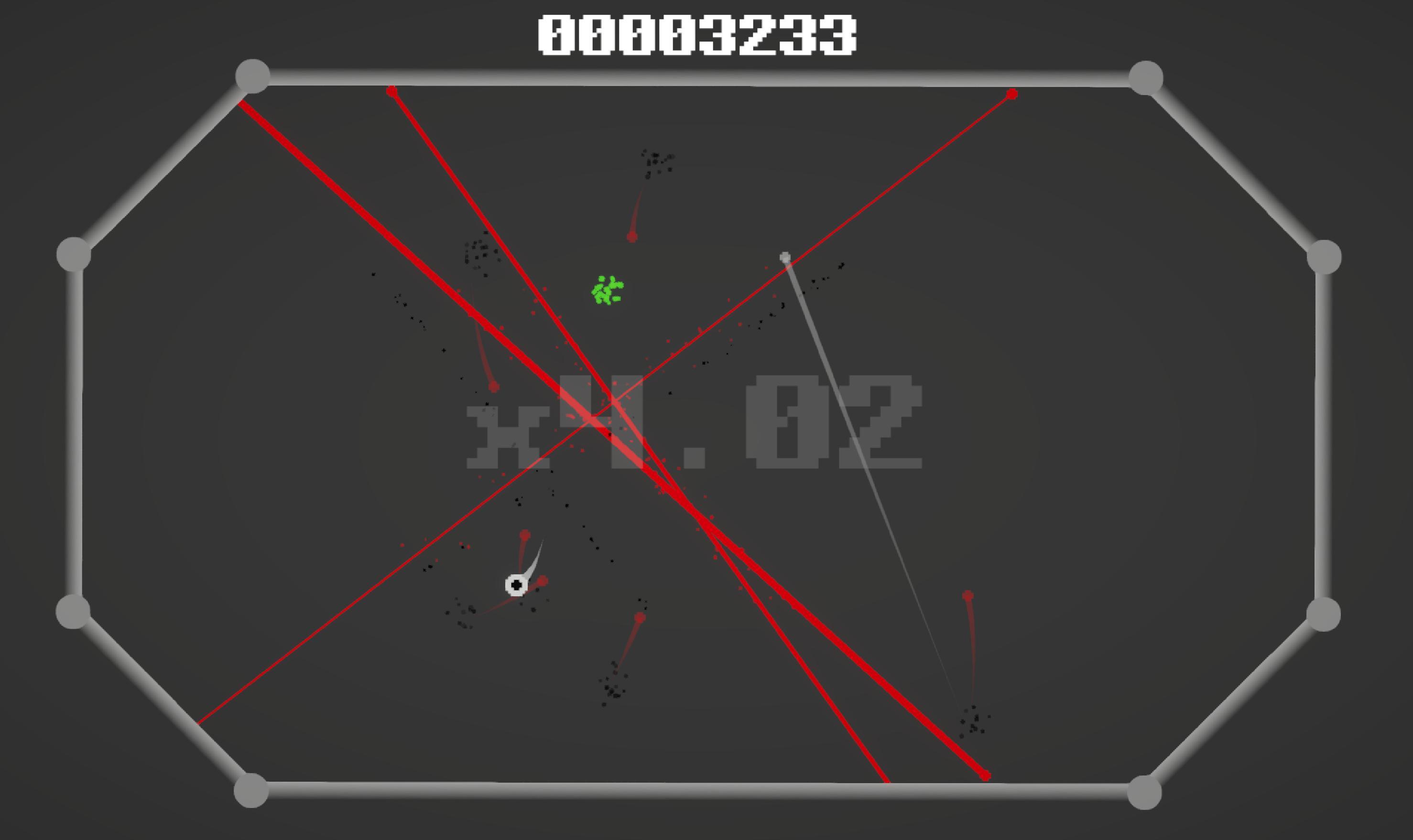Вдохновлено гибридом игр Rhythm и Bullet Hell. Уклоняйтесь от выстрелов и зарабатывайте очки!