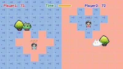 Это простая игра, в которой два игрока должны управлять персонажами на экране. Игроки могут управлять с помощью клавиатуры с помощью пробела или X, чтобы создавать пули, WASD и стрелки для перемещения. Пули могут окрашивать пол в разные цвета или атаковать другого игрока. Каждый игрок может получить до трех пуль.