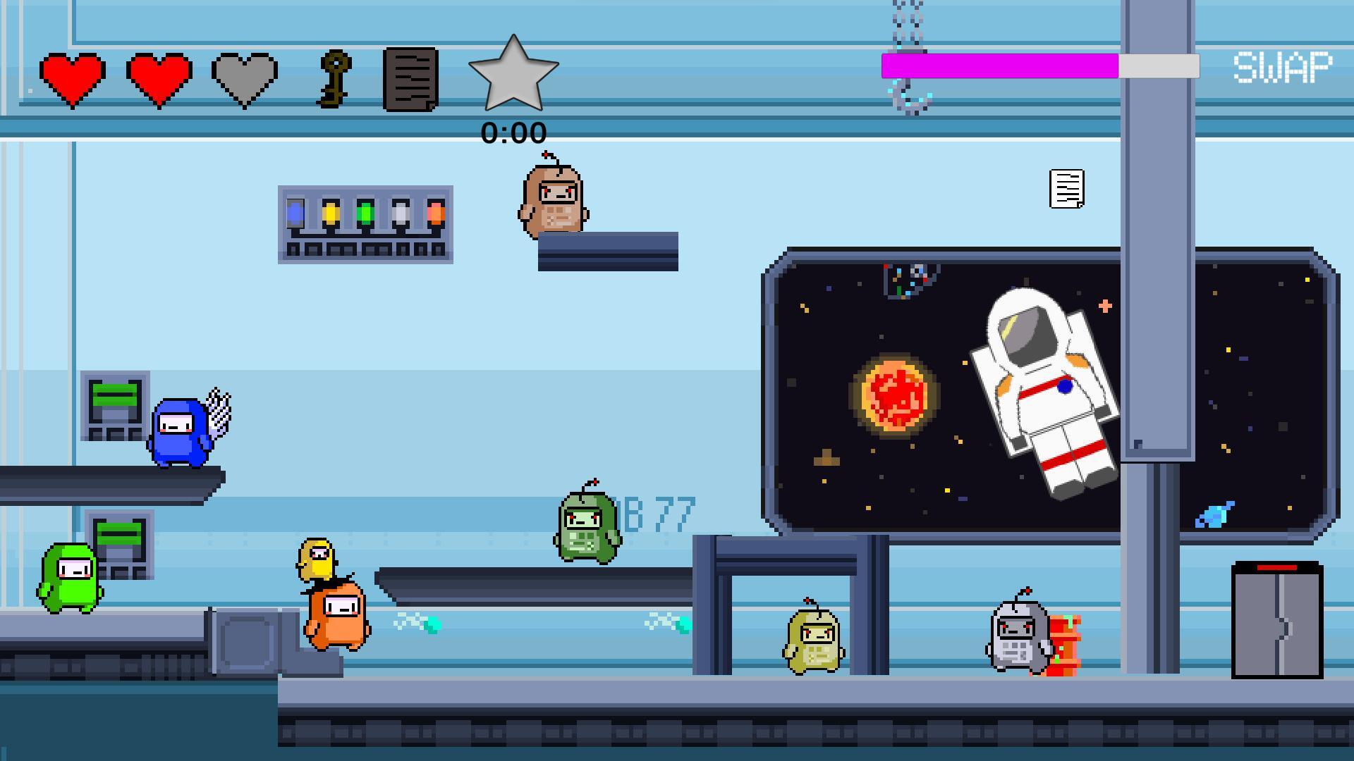 Эта 2D-платформер-игра создана для 3-4 игроков, которые могут сотрудничать, чтобы сбежать от сумасшедшего ученого, способного обменивать души героев. Обладая сверхспособностями, игрокам придется решать головоломки всех уровней, чтобы наконец встретиться с профессором.
