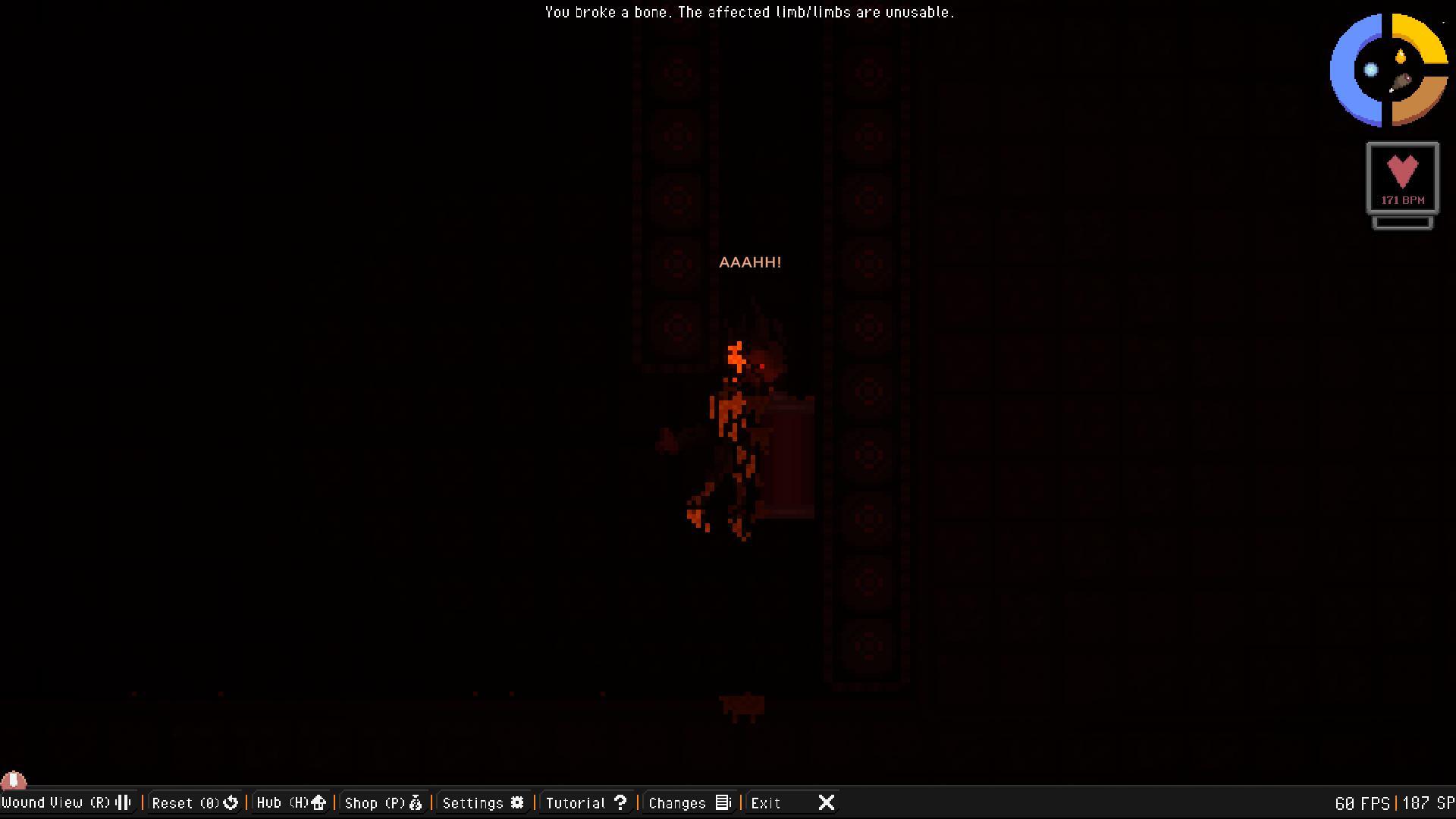 Благодаря системе повреждений каждая конечность может быть повреждена отдельно, кровоточить, чувствовать боль и даже сломаться. Вы также можете получить сотрясение мозга, утонуть, расплавиться в лаве, порезаться пилой, растоптаться молотком и многое другое. Да, и то же самое относится ко всем врагам.