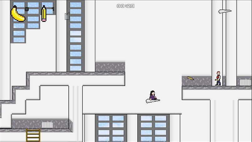 - Уборщица Ходит взад и вперед в пределах отведенного места. Если игрок коснется ее, игрок проигрывает. ПЛАйер может отвлечь уборщицу, бросив банан в ее зону уборки.