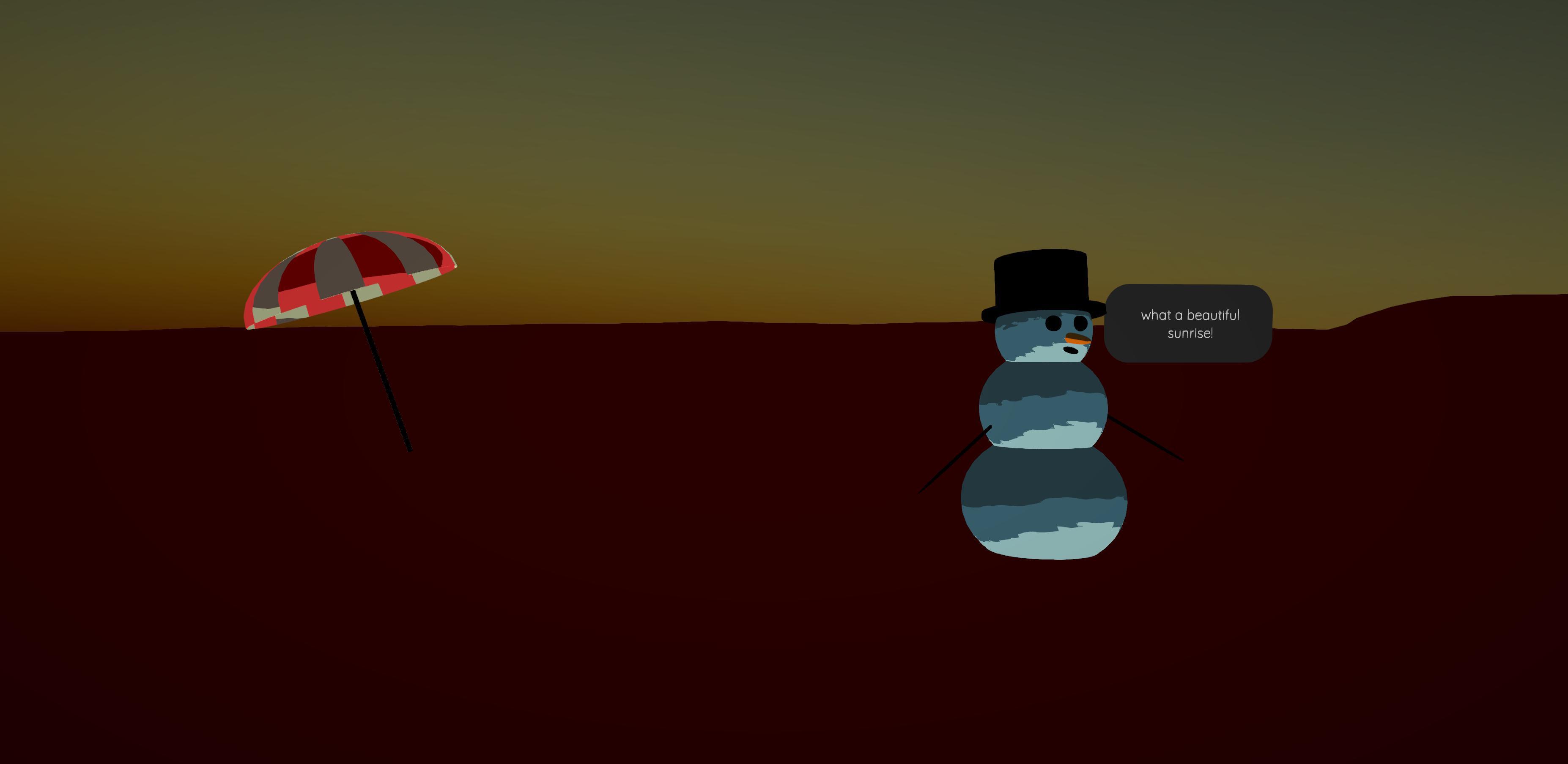 подсказка 1 Снеговику нужна тень подсказка 2 Вам нужно на самом деле отбросить тень на снеговика, неся зонтик.- шрифт: Эндрю Паглинаван
