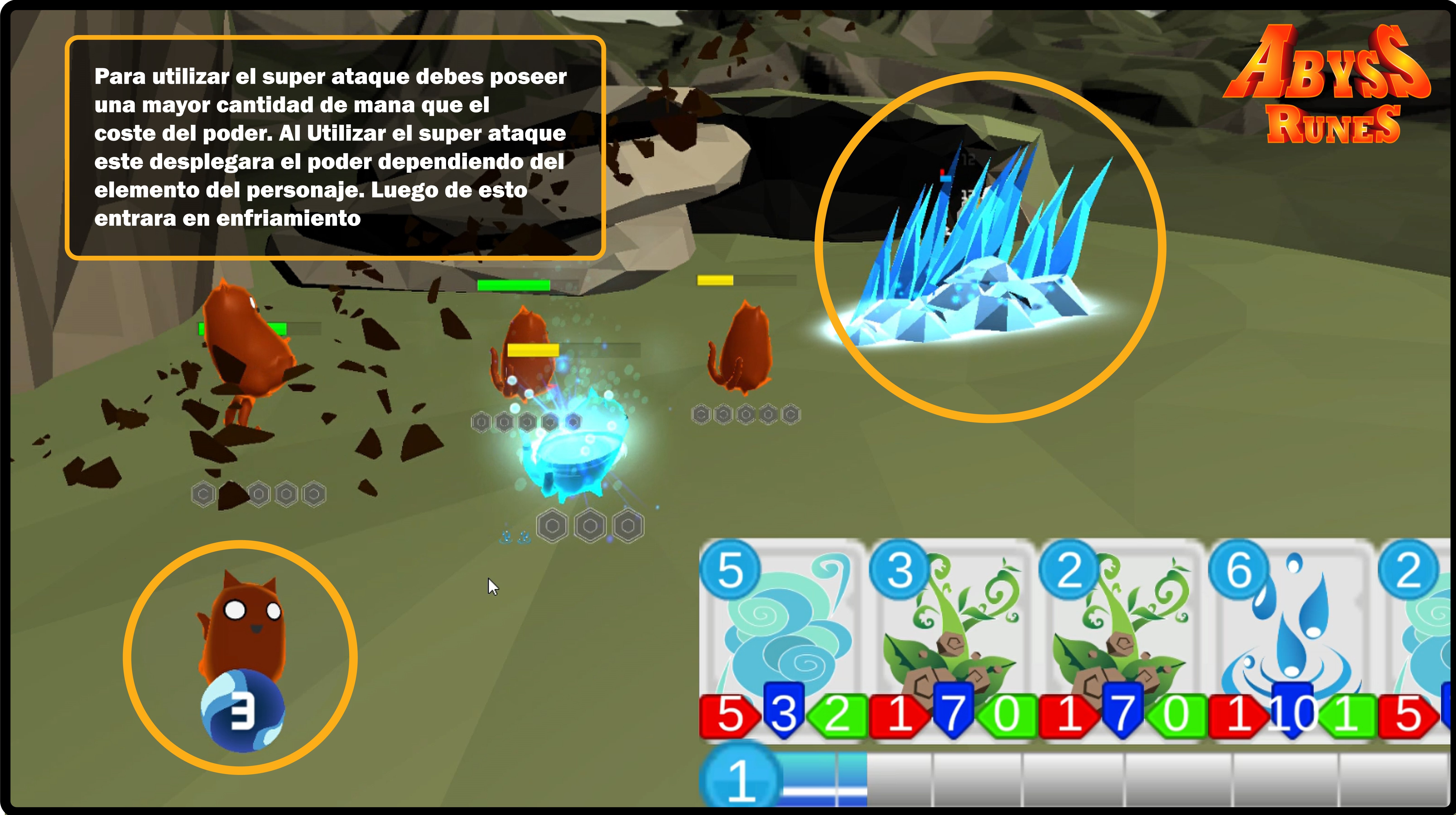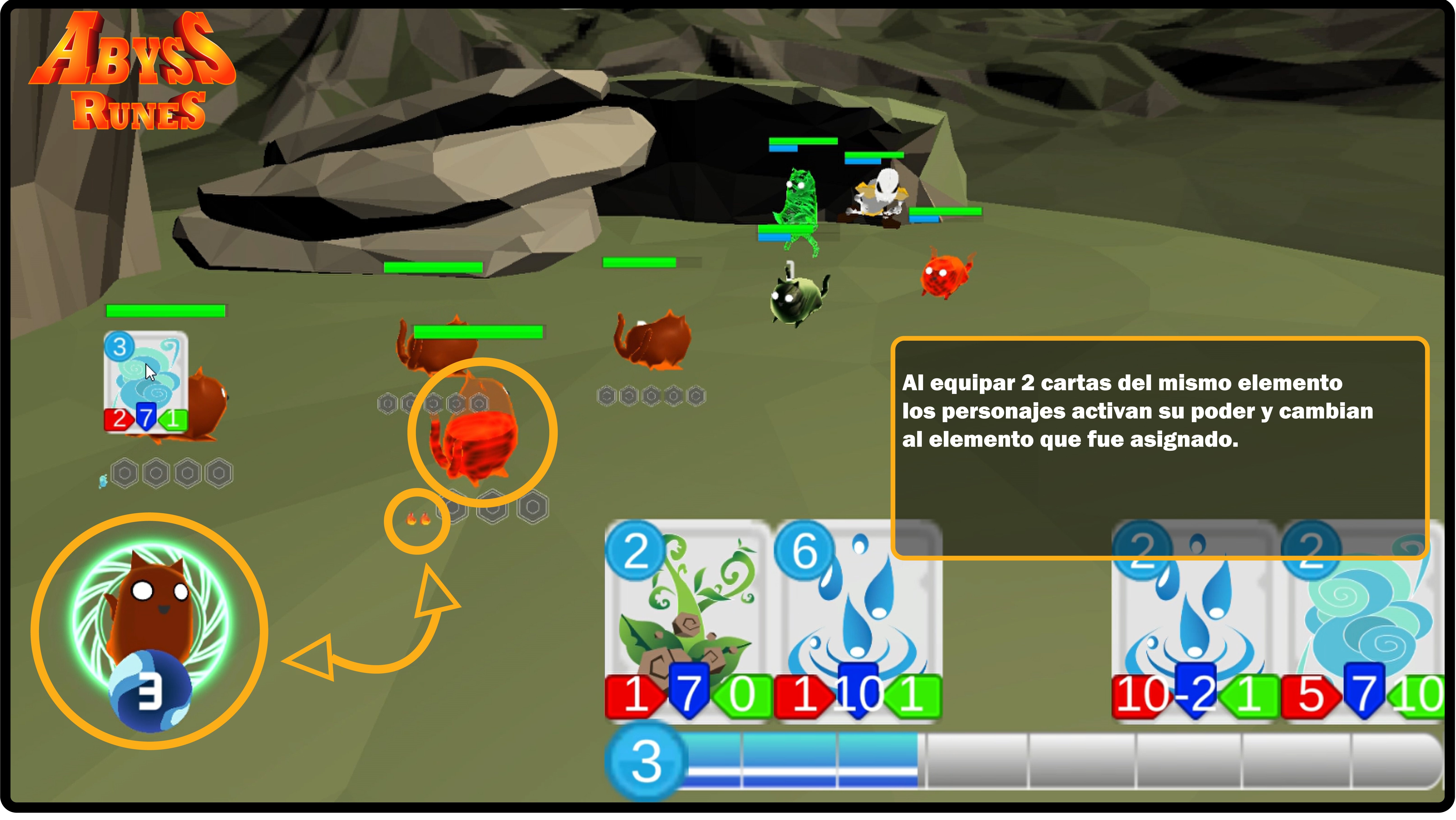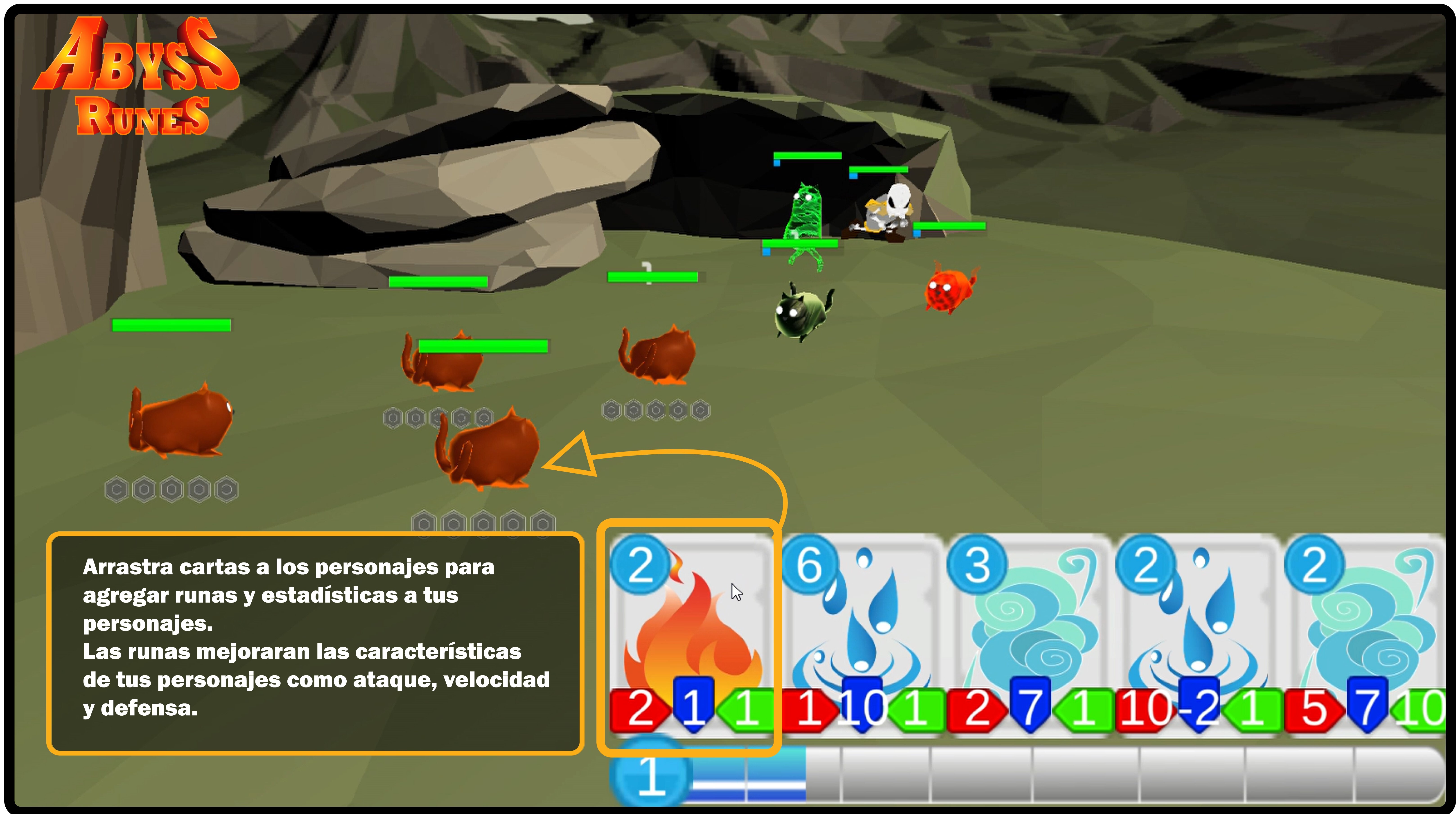 Abyss Runes является прототипом видеоигры RPG, тактической тактикой карт, которые помогают в битвах (cartas), а лос-персонажам пункт así cambiar de elemento los personajes y activar sus poderes y sinergias.