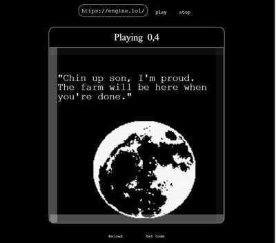 Это небольшая история, созданная с помощью нового крутого интерактивного инструмента под названием Engine. Это линейная маленькая история, созданная для тестирования инструмента. Перейдите к краю квадрата и нажмите на светящийся край, чтобы перейти на следующую страницу.