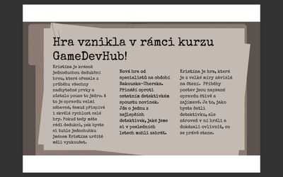 Кристина je hra, kterou vytovřil Rudolf Semanský ve Twine behem kurzu herní scenáristiky www.gamedevhub.cz Jde o detektivní hru, odehrávající se v roce 1903, v Rakousko-Uhersku. Jako soudce zkoumáte důkazy, vyslýcháte svědky a rozodujete o osudu obžalované v jednom z nejstarších zdokumentovaných případů.