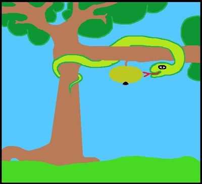 Все божьи создания мирно живут в Эдемском саду. Но такой маленькой змее, как ты, вряд ли будет весело. Может быть, вам удастся убедить человеческую женщину сделать что-нибудь смешное. Например – украсть у Бога яблоки мудрости. Это может быть весело.