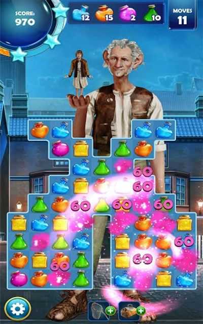 Присоединяйтесь к Большому дружелюбному великану и Софи в причудливом путешествии по волшебным мирам, таким как Страна грез и Страна великанов. Переключайте и подбирайте разноцветные баночки снов, наблюдайте, как Софи пытается ловить сны двумя руками, а BFG аплодирует вашим действиям в этом удивительном приключении.