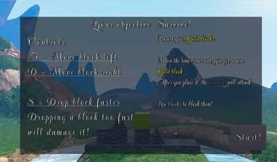 Используйте клавиши A и D, чтобы перемещать блоки влево или вправо, используйте S, чтобы бросать блоки быстрее, но если вы уроните блоки слишком быстро, они могут быть повреждены!