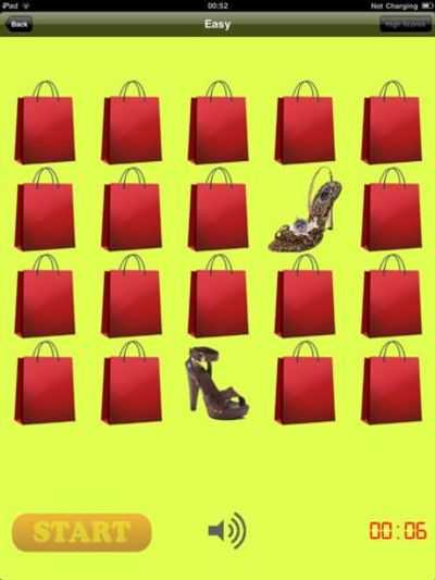 Нажмите, чтобы перевернуть сумки с покупками, найдите сумки с одинаковой обувью и они исчезнут. Но поторопитесь, ведь время идет.