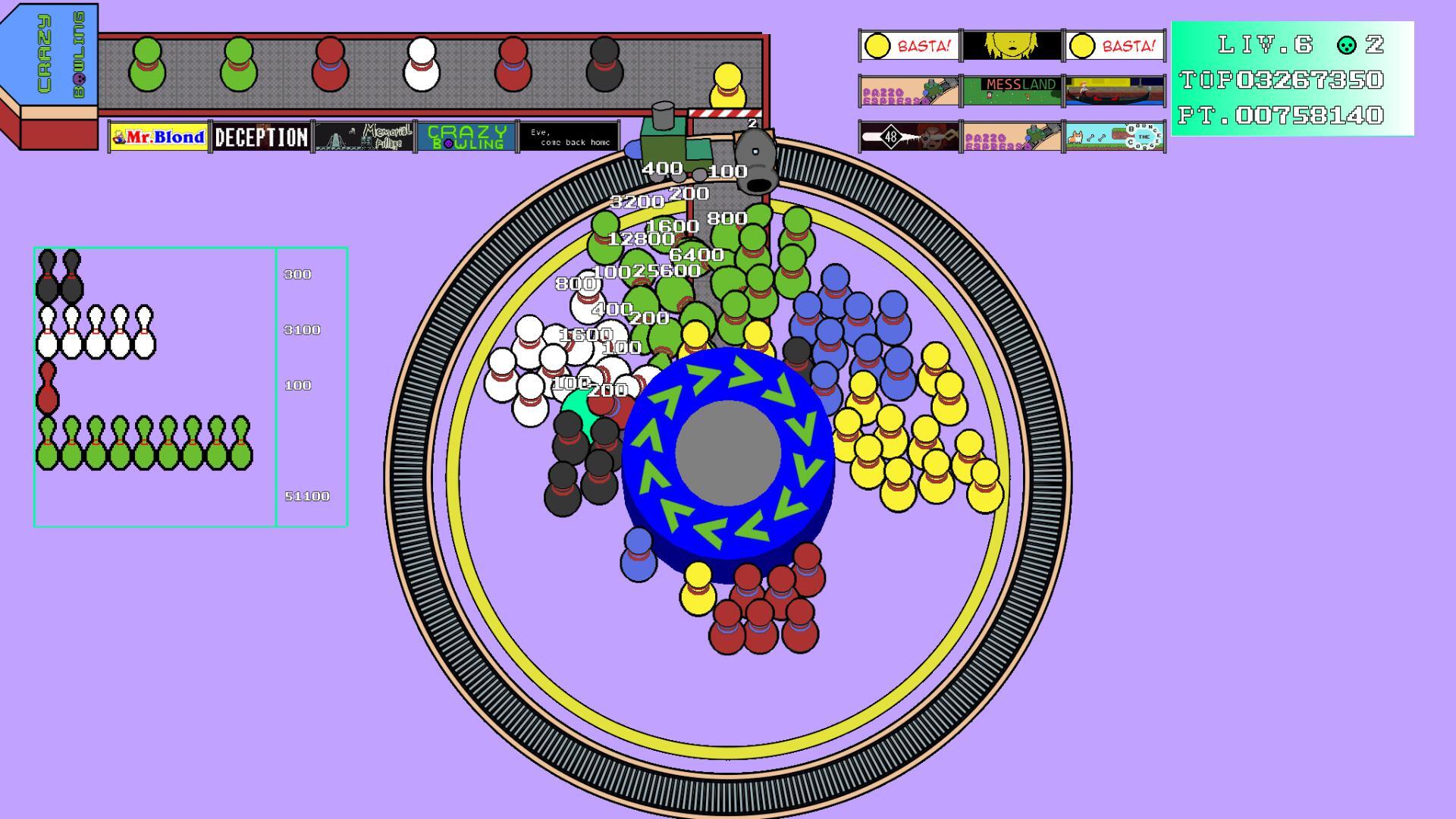 - Почему-то у вас не осталось шаров для боулинга? Не бойся! Вы также можете получить их обратно, соединив пятнадцать контактов одного цвета! Игра еще не оконченат! (Одновременно можно хранить не более девяти шаров для боулинга.)
