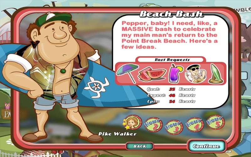 Список клиентов Пеппер включает в себя многих жителей города. сливки светских страниц, и все они стремятся устроить величайшую вечеринку, которую когда-либо видел город. Позаботьтесь о более чем 60 личностях персонажей с помощью ваших профессиональных сотрудников, которые помогут смешивать, смешивать и управлять ими. Помогите выбрать идеальные украшения, напитки, закуски, развлечения и многое другое. Сохраняйте праздничное настроение, чтобы гости были довольны, а разговоры проходили с помощью специальных бонусов, чтобы все прошло гладко. И выкиньте им на ухо этих незваных гостей вечеринок!