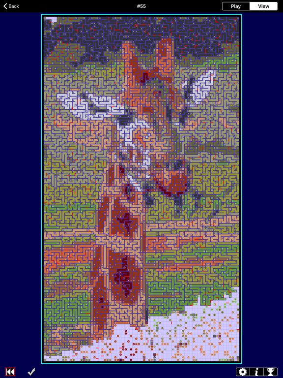Эти головоломки БОЛЬШИЕ! Размер головоломок варьируется от 7360 квадратов (46x160) до 15 540 квадратов (140x111), в среднем около 10 000 квадратов (100x100). Каждая головоломка представляет собой гигантское полотно — прокладывайте себе путь через него, чтобы нарисовать законченную картину.
