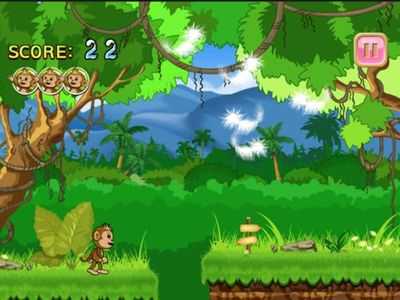 Присоединяйтесь к детенышу шимпанзе, чтобы избегать препятствий в джунглях. Для всех возрастов.