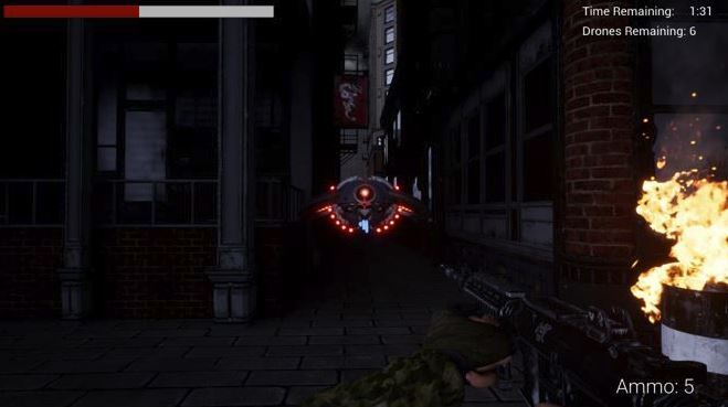 Уничтожьте всех оставшихся дронов на уровне, чтобы победить. У вас есть 3 минуты, чтобы сделать это. Убедитесь, что у вас есть патроны и здоровье, которые можно подобрать на уровне.