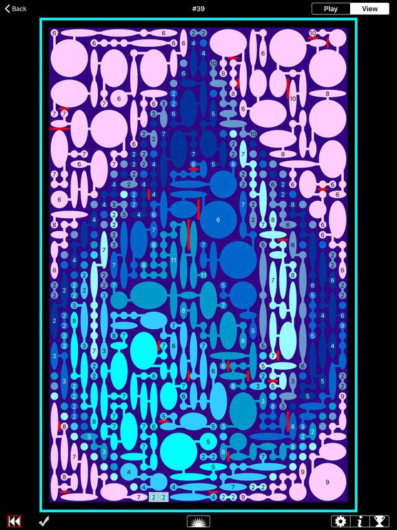 Нарисуйте яркие, смелые цветные нити, соединяющие пары совпадающих конечных точек. Длина каждого пути должна совпадать с числами на двух конечных точках, которые он соединяет. Длина каждого пути равна количеству ячеек, через которые он проходит. Большая или маленькая, каждая ячейка на пути считается за 1 единицу длины. Нарисуйте назад или дважды нажмите, чтобы исправить ошибки. Есть только один способ сделать это, и после решения головоломки все квадраты будут содержать часть пути. Завершите решение, чтобы увидеть созданную миниатюрную картинку.