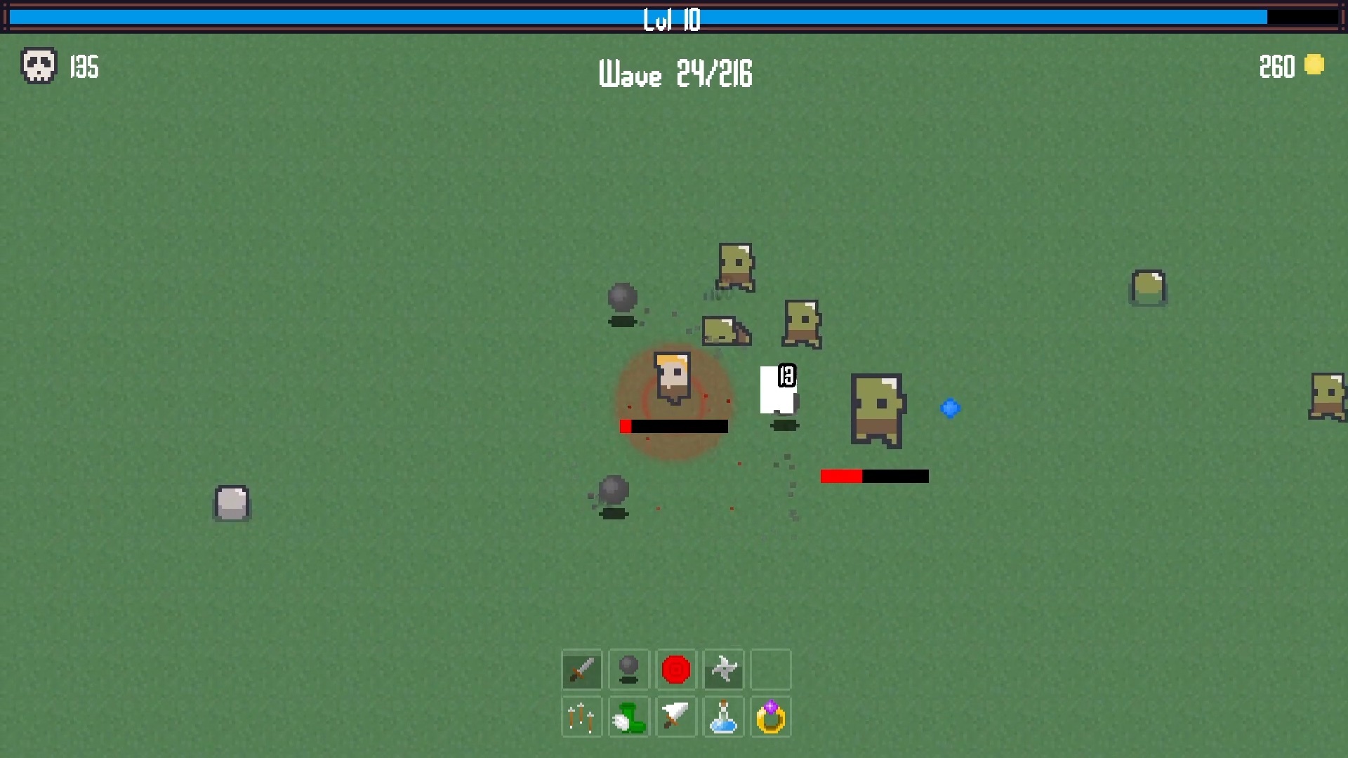 Предметы дадут вашему герою и вашему оружию различные улучшения и сделают вас сильнее. С каждым уровнем у вас есть возможность выбрать между тремя предметами или оружием.