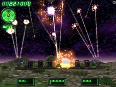 Есть падающие ракеты, и у вас есть Ракетные пусковые установки, которые пожарно перехватывают ракеты, чтобы сбить входящие ракеты. Вы нажимаете на экран, чтобы запустить ракету к этой точке, и есть падающие питания, которые вы также можете сбить.