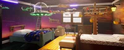 После возвращения домой из В школе твои родители говорят тебе, что комната твоего близнеца только что была отремонтирована с использованием двух лучших тем на свете: космоса и пиратов! Насколько это здорово? Вы подбегаете к своей недавно отремонтированной комнате и с нетерпением ждете возможности увидеть ее впервые.