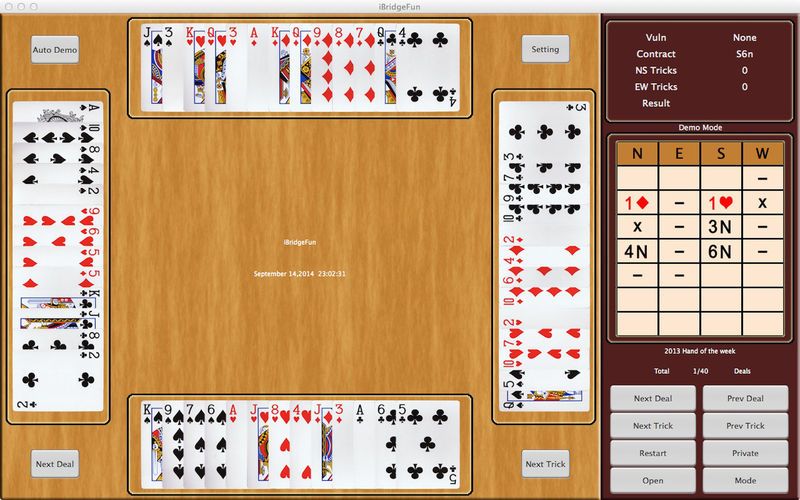 Режим AI (движок AI): в этом режиме вы играете как заявителем, так и манекеном, Mac сыграйте в защитников. щелкнув карту разыгрывающего или манекена и кнопку «ОК», чтобы начать игру.