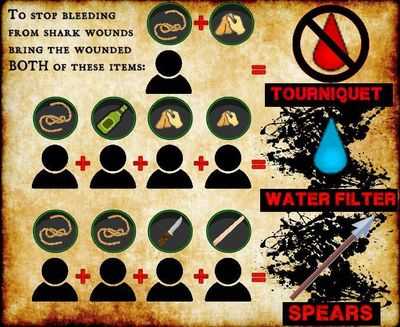 - Используйте оружие, созданное выжившими, чтобы усилить свои атаки при защите от акул!