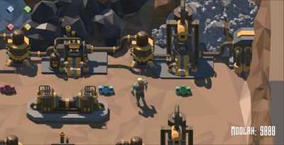 -На нашем заводе есть три станка, дрель, печь и стальной пресс. Бур производит руду для печи, печь производит стальные листы для пресса, а пресс для стали производит штампы, которые продаются с прибылью! Руды и стальные листы хранятся в хранилищах между различными машинами.