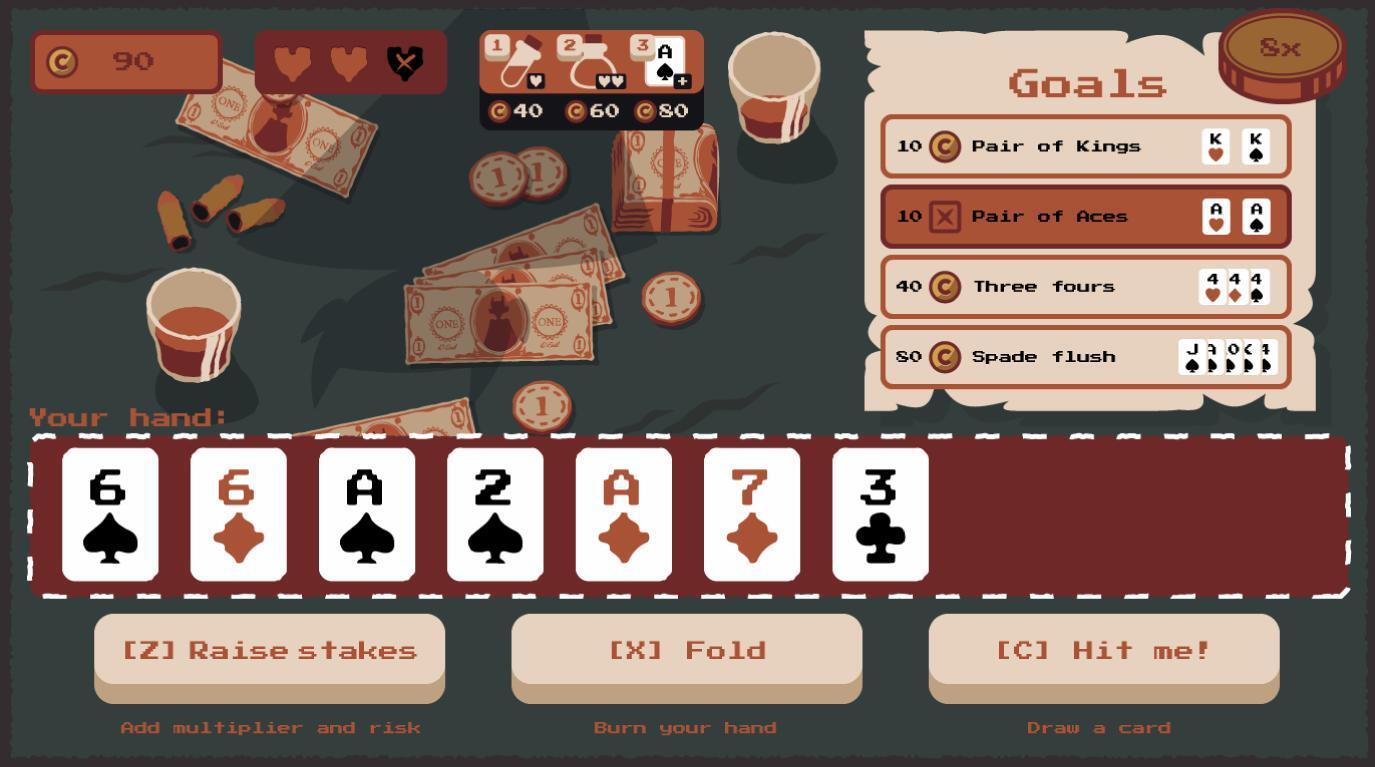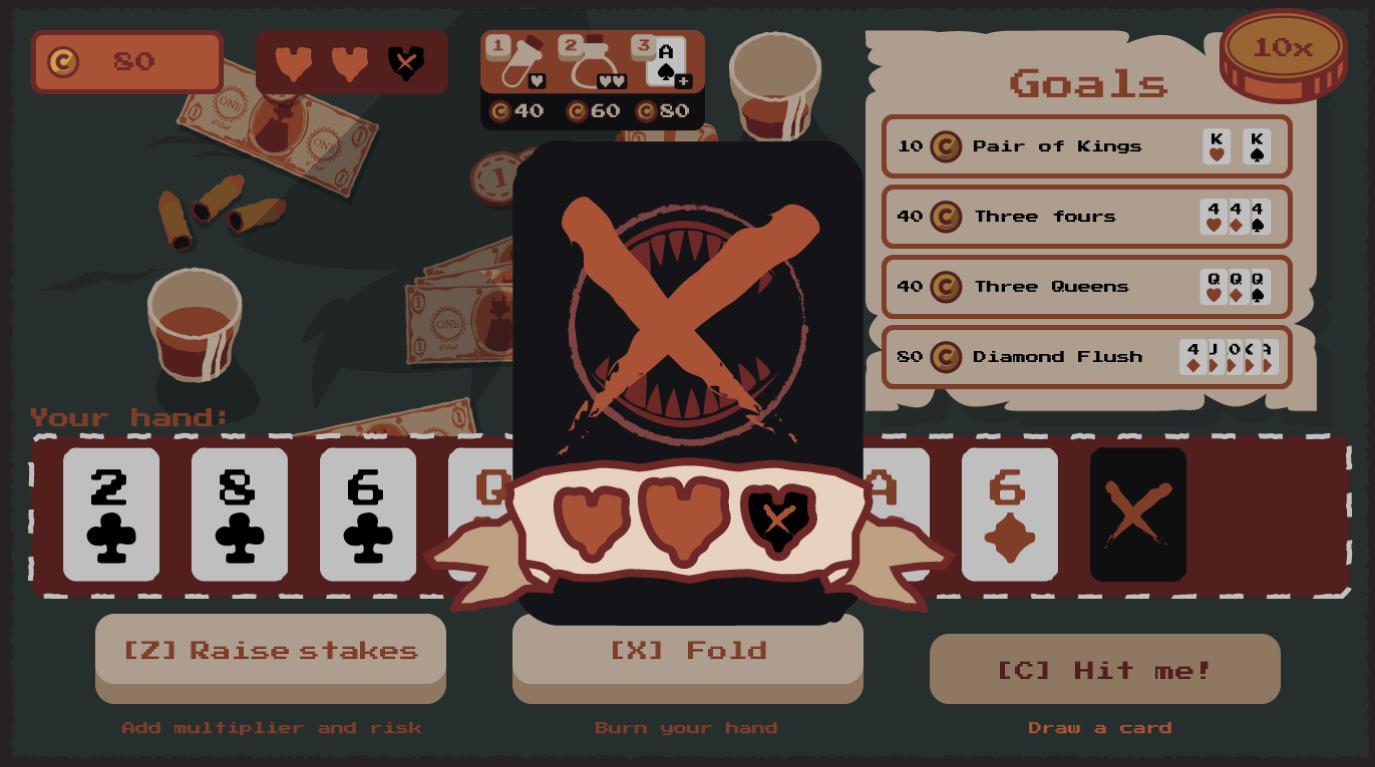 Ружелит для видеопокера, созданный для GMTK Game Jam 2022