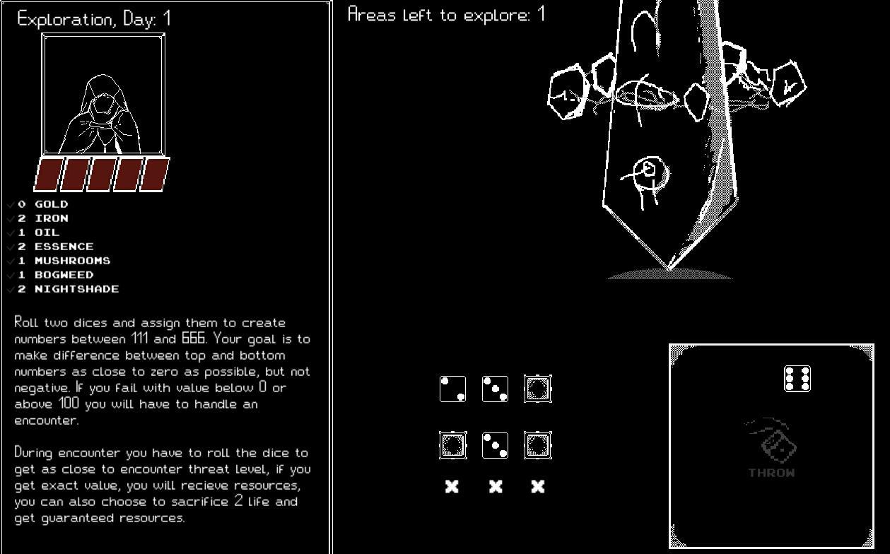Элементы управленияВсе управление осуществляется с помощью мыши, механика подробно объяснена в игре. Игра заканчивается, когда игрок умирает или через 10 дней, после чего подсчитывается счет.