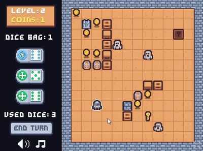 Это небольшой прототип, похожий на рогалик, в котором вы используете игральные кости, чтобы перемещать игрока. уровень. Соберите ключ, чтобы открыть выход. Вы должны приземлиться точно на дверное пространство. Пройдите уровень 7, чтобы победить.