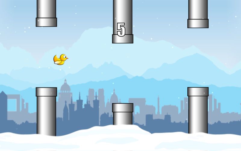 Нажмите указатель мыши в любом месте игрового экрана, чтобы взмахнуть своими крошечными крыльями и отправить уточку в заснеженное приключение. Перемещайтесь по трубам, летая вверх или вниз и через промежутки. Гоняйте по снегу и спасите утку от холода.