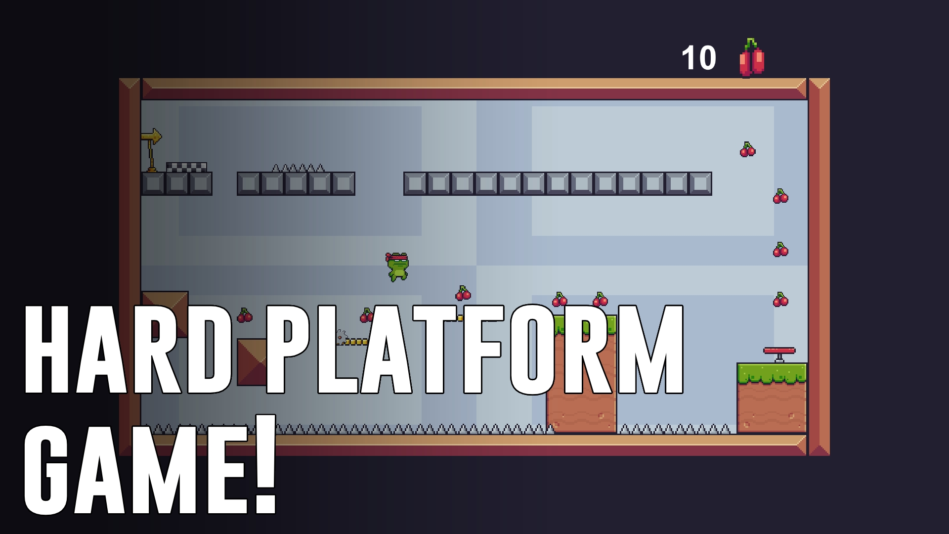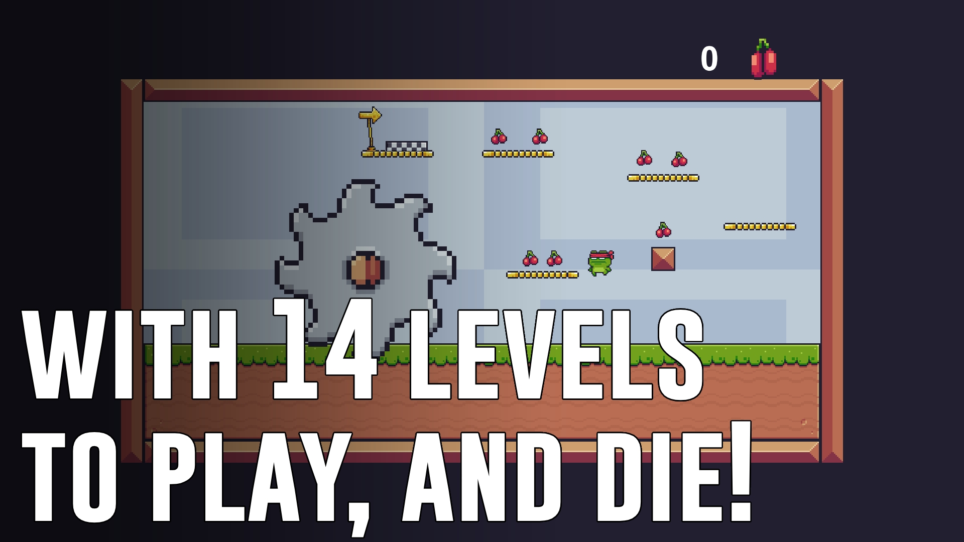 Вы лягушка и хотите вишен, потому что это вкусно, поэтому вам придется перепрыгивать через шипы, уклоняться от гигантской пилы и падать на падающую платформу!