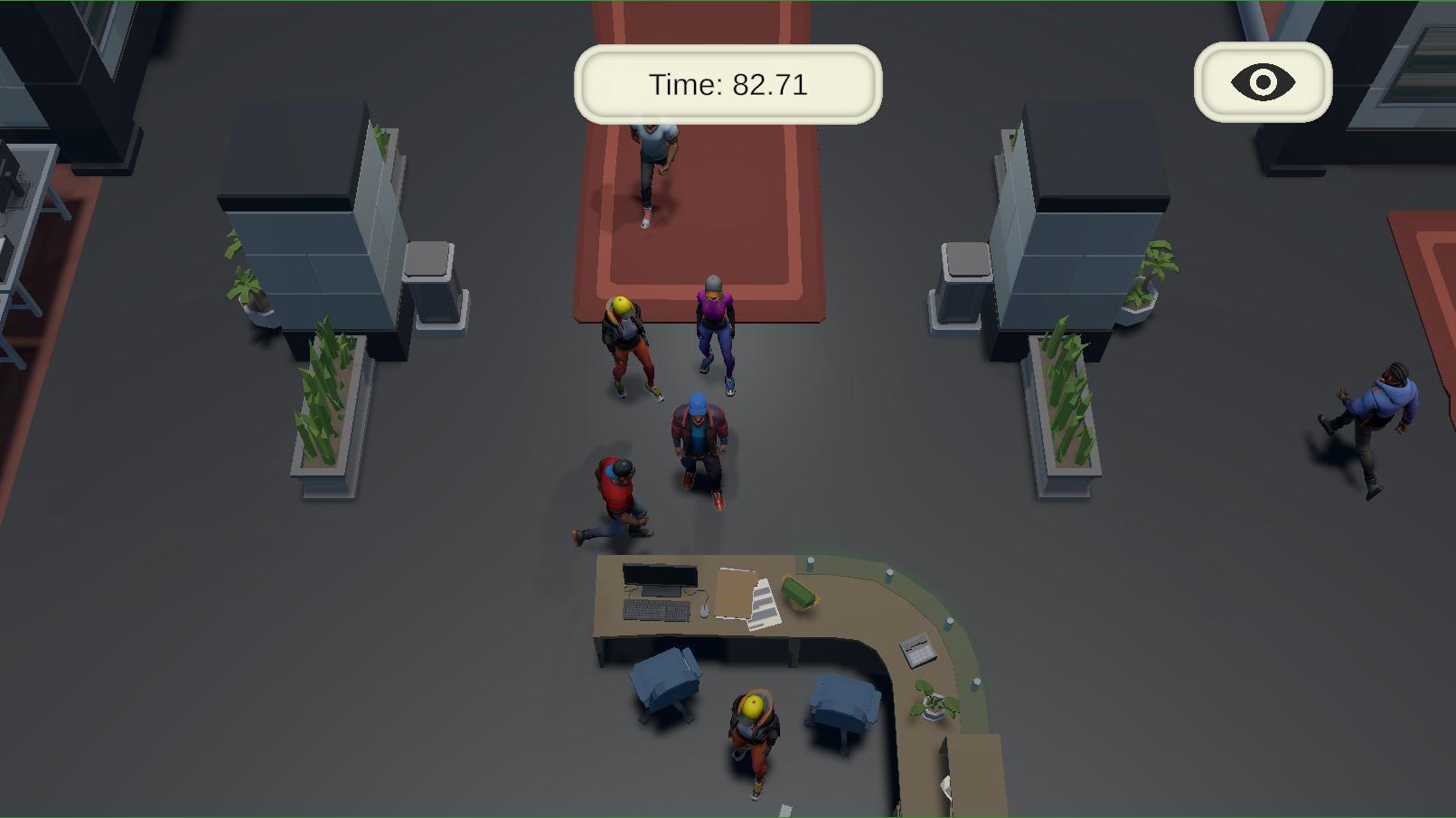 Вы можете использовать свои силы, чтобы тайно вывести из строя копировальные аппараты и банкомат в офисе (нажмите E, чтобы взаимодействовать), чтобы отвлечь коллег и улизнуть, чтобы переодеться (удерживайте F или Q, чтобы снять одежду и надеть костюм). кусочки, по одному.) Вы можете приседать и ползать (нажмите C или CTRL, чтобы переключить приседание/встать) позади и даже под некоторыми объектами, а также перепрыгивать через них (нажмите пробел, чтобы перепрыгнуть), чтобы избежать обнаружения.
