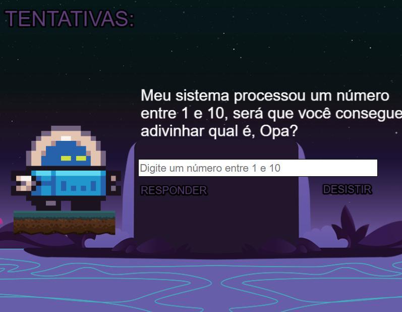 Adivinhe o Número é um jogo de adivinhação, no qual você deve adivinhar um número entre 1 e 10 que o robozinho está pensando! Há poucas tenativas, então seja cauteloso!