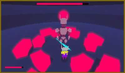Передвигайтесь по арене в такт музыке. Избегайте попадания движущихся красных блоков и ударяйте робота посередине.