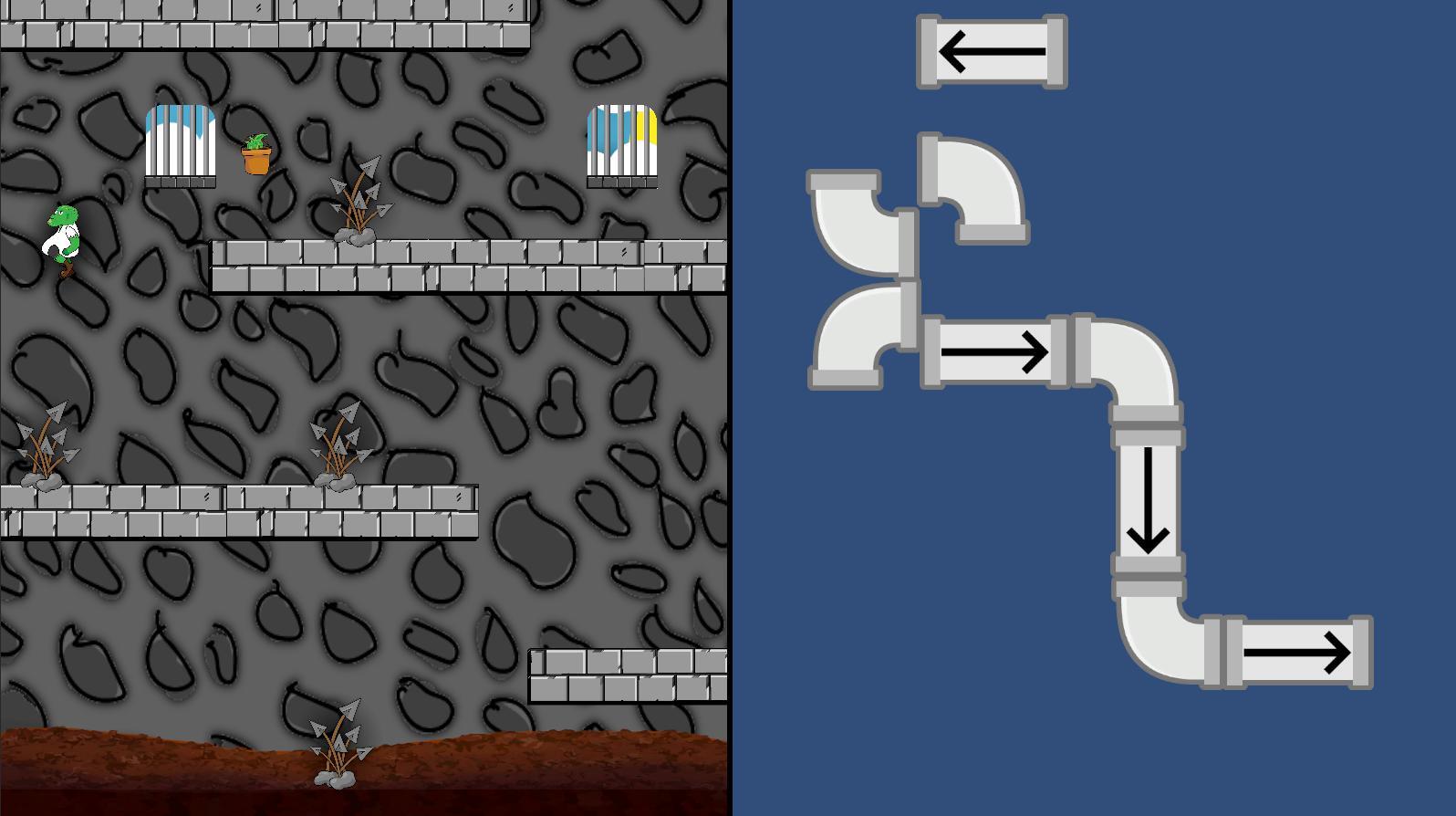 Игрок 1 использует клавиши A и D для перемещения и ПРОБЕЛ для прыжка на левый экран в то время как