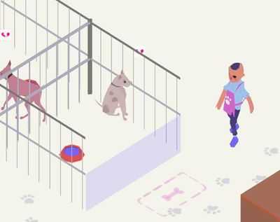 Вы работаете в приюте для собак No-Kill и должны делать своих собак счастливыми, чтобы их усыновили семьи. Постоянно прибывают новые собаки, поэтому следите за тем, чтобы у вас не закончилось место! Пополняйте запасы еды в ведрах, расположенных вокруг объекта.
