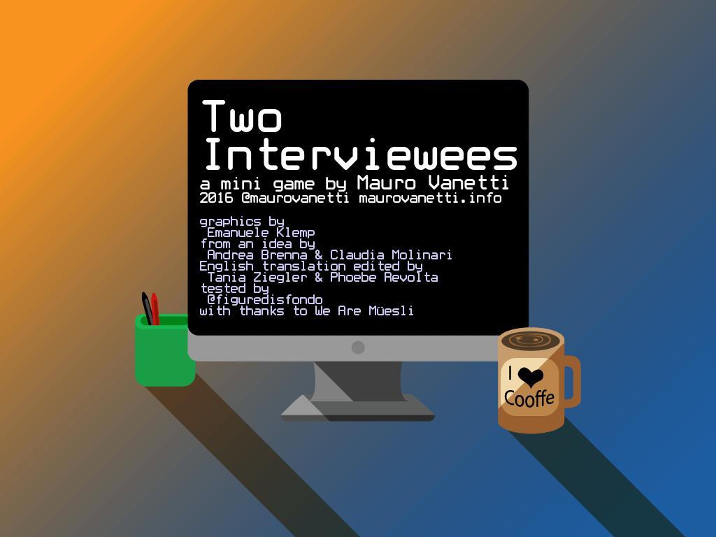 Это повествовательная мини-игра, созданная на итальянском языке независимым разработчиком Мауро Ванетти за один день во время курса нарративного игрового дизайна, проведенного We Are Müesli в Болонье в январе 2016 года. В настоящее время она публикуется на английском, итальянском, французском, испанском, бразильском португальском и Корейский с обновленной графикой Эмануэле Клемп, чтобы распространять информацию о дискриминации по признаку пола при доступе к работе.