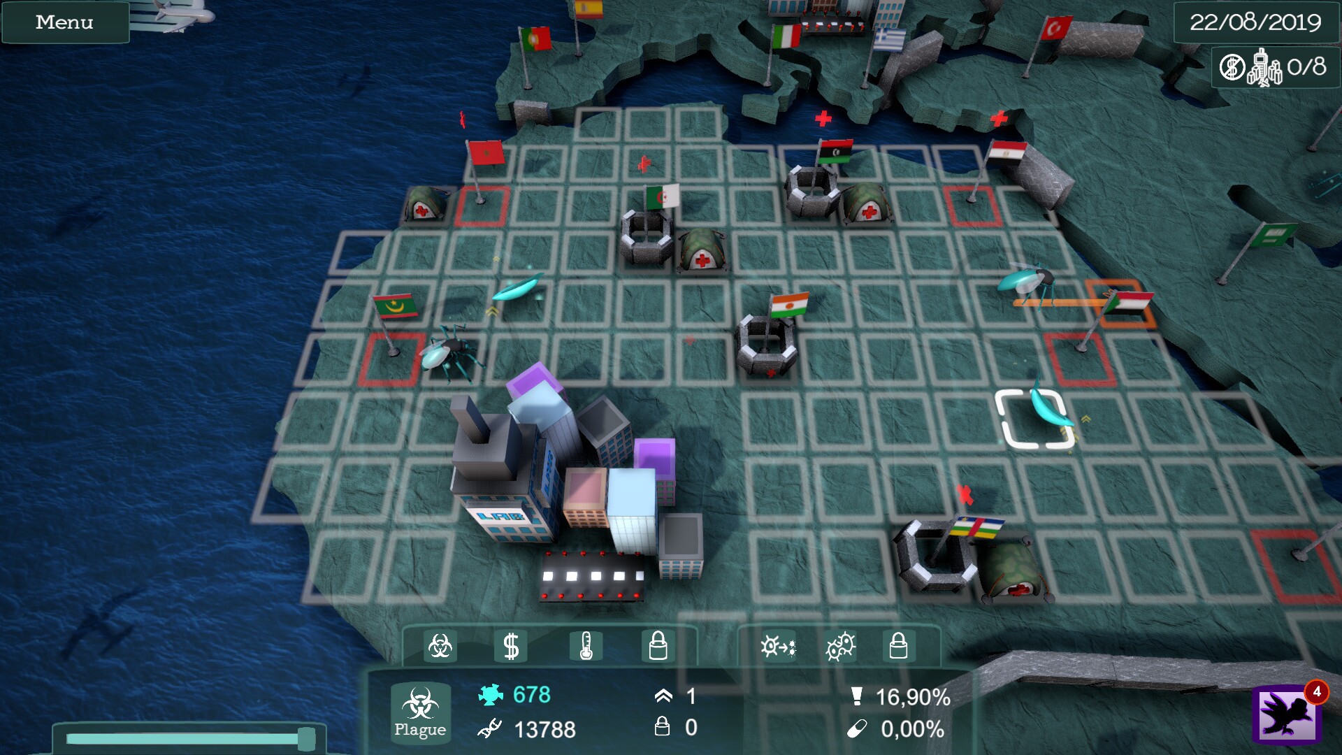 Выбирайте из множества различных типов патогенов, каждый из которых обладает уникальными способностями. Вы можете настроить свою чуму, выбрав цвет и название болезни. В будущем появится множество дополнительных настроек.